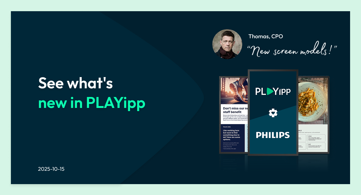 Thomas Sundgren is Chief Product Officer at PLAYipp and is responsible for the company’s product strategy and development. With extensive experience from the tech and media industry, he drives PLAYipp’s work to develop the market’s most user-friendly and powerful platform for digital signage. His insights in technology, product design and customer value make every article worth reading for anyone who wants to understand where digital signage is headed.